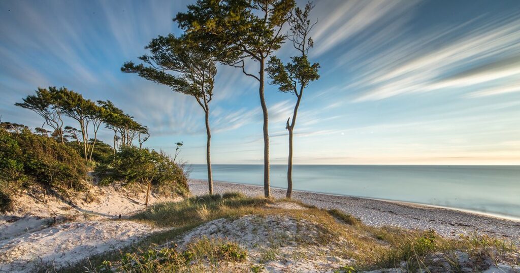 An der Ostseeküste Mecklenburg-Vorpommerns finden Sie endlose Strände und Seenlandschaften zu Spottpreisen. Die Region ist flach, windig und perfekt für Windsurfen oder Radtouren – und im Gegensatz zur Nordsee weniger überlaufen.